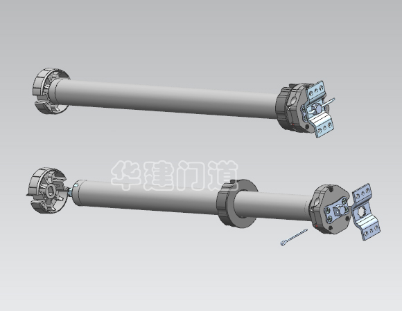 平衡系统:华建欧卷车库门根据门洞尺寸不同,门体款式型号不同,配不同规格平衡轴,如φ80、140、165、220等;