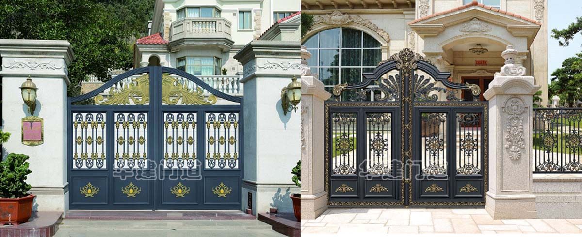 华建电动铝艺庭院门门体可采用各类铝型材、铝片等精制而成,可制作任意颜色及任意外观款式。门体的每个细节均精工打造,整体高档、精致、端庄、华丽。五金配件、开门机、安全保护装置等均特制并精心匹配。被广泛用于各类建筑车道出入口,具有外形美观、结构坚固、安装方便、耐用等特点。华建铝艺庭院门安装开启方式可分为平开式和平移式。庭院门一般仅有门洞两侧门柱,而洞口过梁为开放式门洞,两门柱间间距尺寸变化很大,应根据不同情况及要求考虑庭院门形式。对于门柱间距较大者多考虑平移式庭院门,门柱间距较小者应多考虑平开式庭院门。铝艺平移庭院门由门体、导轨、导轮、驱动电机、保护装置等组成;铝艺平开庭院门由门体、门轴、导轮、驱动电机、保护装置等组成。